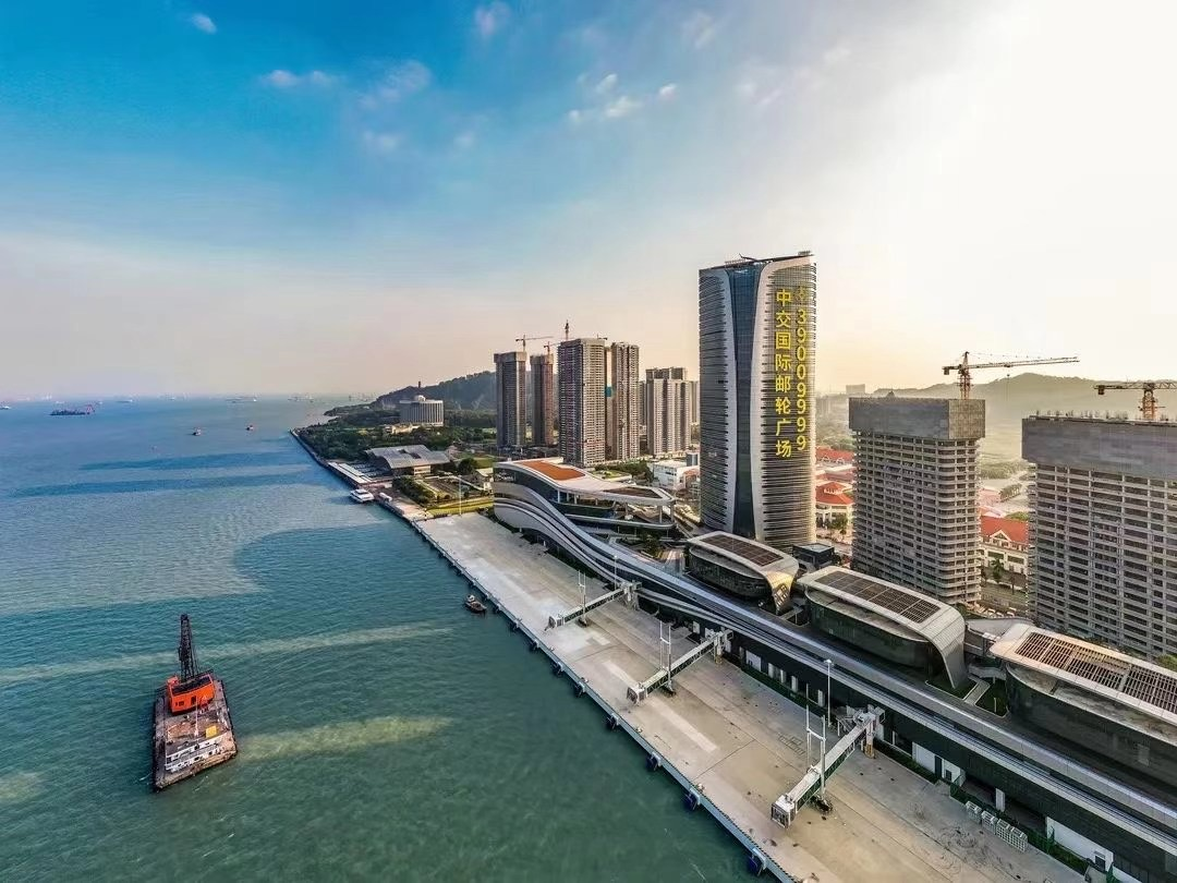 中交•国际邮轮广场是广州南沙国际邮轮母港综合体的重要组成部分,项目总建筑面积约35.6万㎡,汇聚了海景写字楼(即航运中心)、揽海平层、海景商墅、邮轮主题商城等多重业态,其甲级海景写字楼是广州离海最近、南沙湾区板块少有的5A配置高端写字楼,拥有生态海景和舒适的办公环境,依托广州南沙国际邮轮母港的地标形象,未来将打造成为接轨世界的海上商务平台。