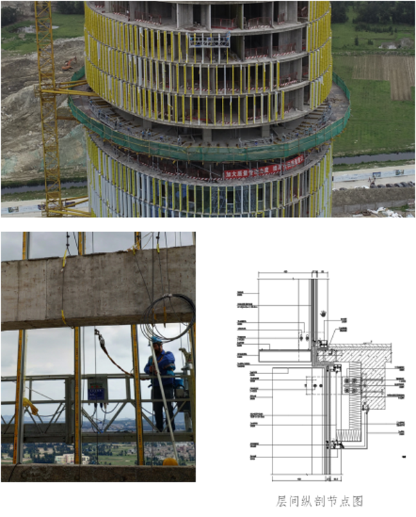 考虑平潭常年大风,塔楼结构整体立面呈“橄榄”式,中部外凸,不利于面板室外安装的特点,采用室内安装横龙骨及玻璃面板,减少了室外安装操作时间,降低了安装风险。